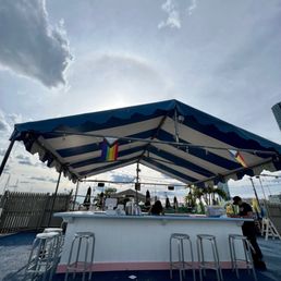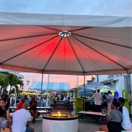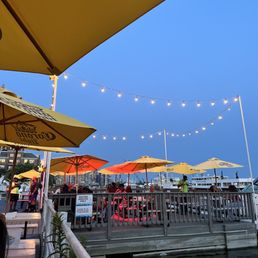 A lot has changed but it's still a hangout spot worth checking out. Back in the day this used to be called Sandbar, and it was a hell of an experience. You had a tough time just finding parking (in a huge empty lot). You had a tough time getting to the bar for a drink. You didn't have a tough time meeting people and getting into fights. Fast forward, Surf City is a much more tamed venue. It still has a big parking lot even though they put some kind of field in the middle of it. The inside layout is huge and open, but mainly everyone comes here to sit on the dock enjoying the shore view and seeing the yachts. It's huge to still have that outdoor bar so you don't have to go far to grab a drink. Plenty of benches, a fireplace seating area, high chairs, bar chairs, and plenty of standing space. The drinks were made nice and strong, but I did not try the food.